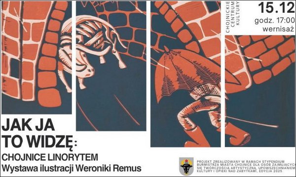 Od 15 grudnia zapraszamy do Chojnickiego Centrum Kultury na wystawę prac stypendystki Burmistrza Miasta Chojnice. W kolekcji "Jak ja to widzę: Chojnice linorytem" Weronika Remus ...