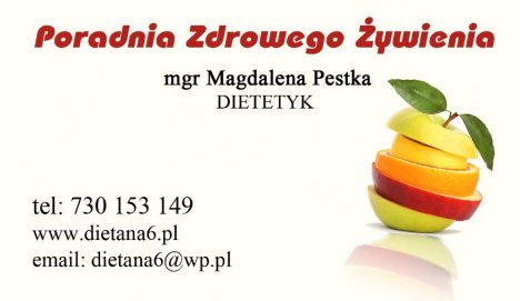 W poradni dietetycznej przyjmuje magister dietetyki z doświadczeniem w prowadzeniu porad dietetycznych, leczeniu dietą oraz skutecznym odchudzaniu.
