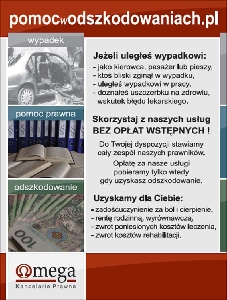 Uzyskaj odszkodowanie!Bez żadnych opłat wstepnych.darmowe porady prawne. |
