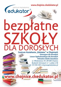 Centrum Kształcenia "EDUKATOR" zaprasza do BEZPŁATNYCH SZKÓŁ DLA DOROSŁYCH:
