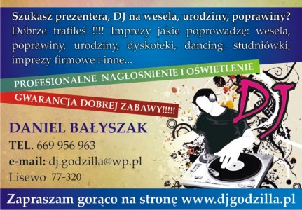 Gramy podczas wieczorków, festynów, zabaw, uroczystości weselnych oraz innych imprez okolicznościowych.