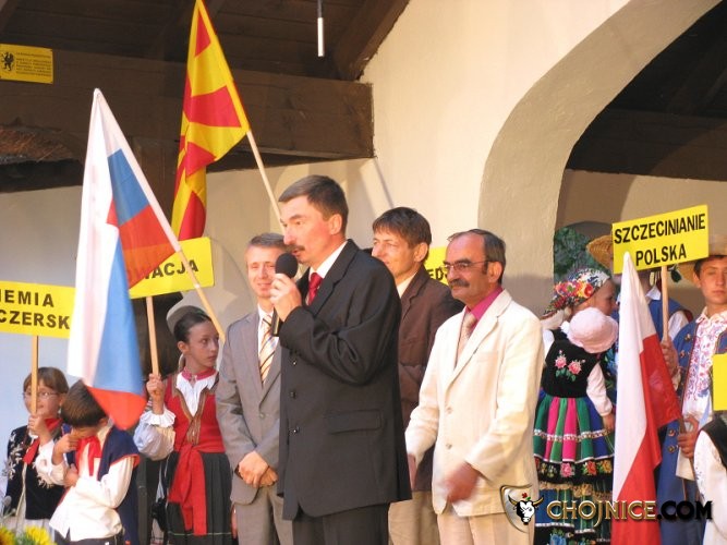 Wójt Karsina Roman Brunke otwiera Festiwal. Na estradzie także (od lewej): burmistrz Brus Witold Ossowski, wójt Zbigniew Szczepański oraz wiceburmistrz Edward Pietrzyk.