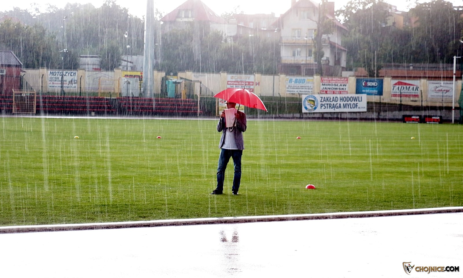Prezentacja w strugach deszczu