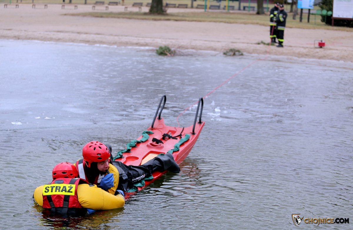 Strażacy dzielili się doświadczeniem z ratownikami. Razem wyciągali osoby z lodowatej wody