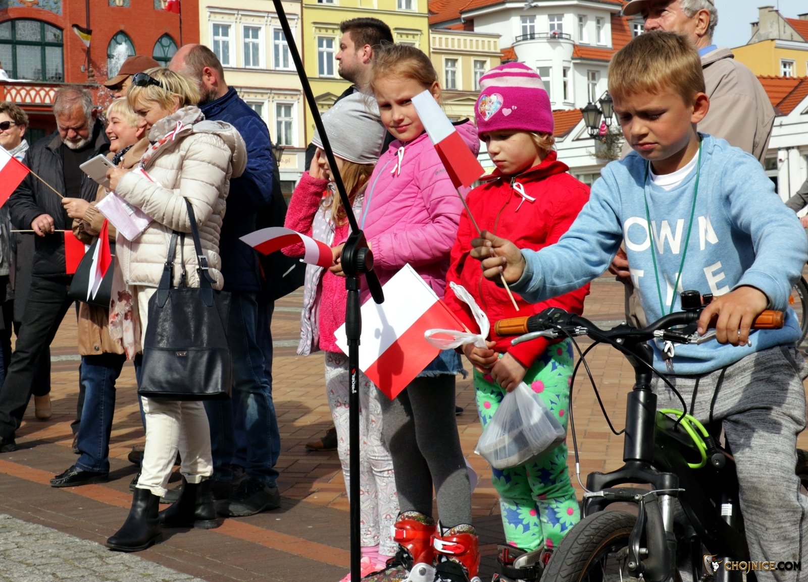 Rozdawano biało - czerwone flagi na Starym Rynku