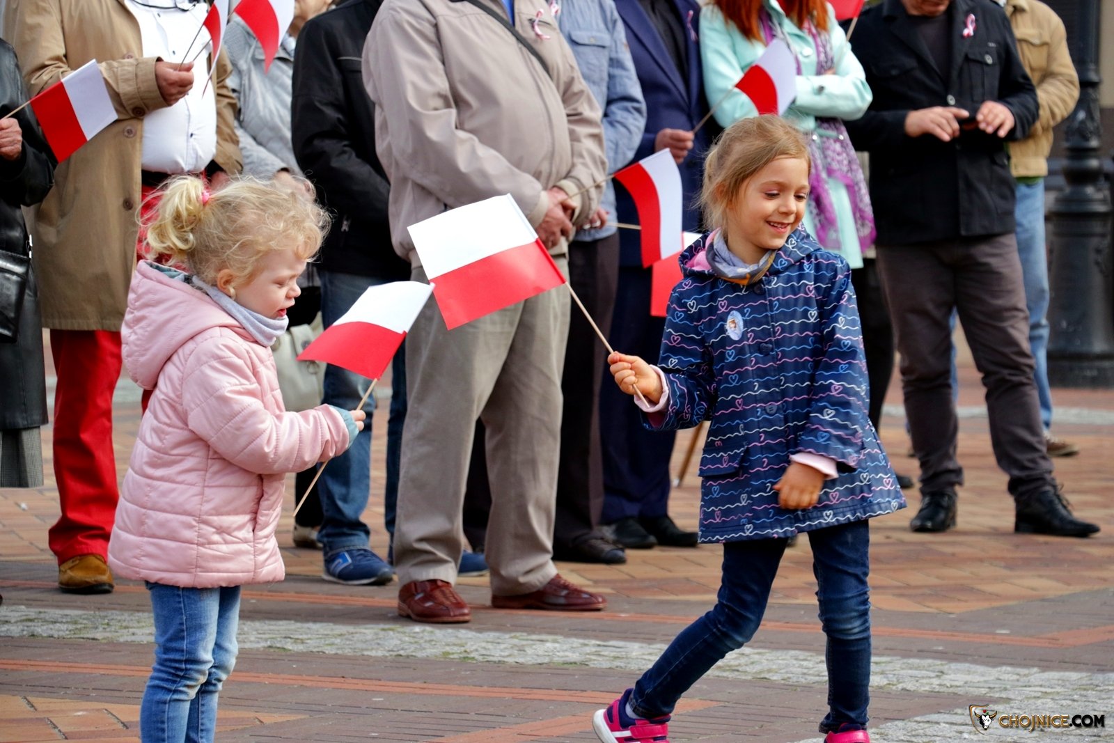 Rozdawano biało - czerwone flagi na Starym Rynku