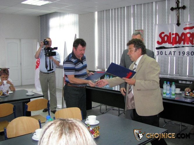 Stanisław Kowalik wręcza podziękowanie za działalność związkową