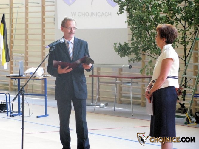 Przewodniczący Mirosław Janowski przekazuje uchwałę RM i pamiątkowy medal