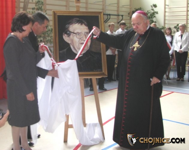 Odsłonięcie portretu patrona szkoły przez A.Finstera i bp.J. B. Szlagę
