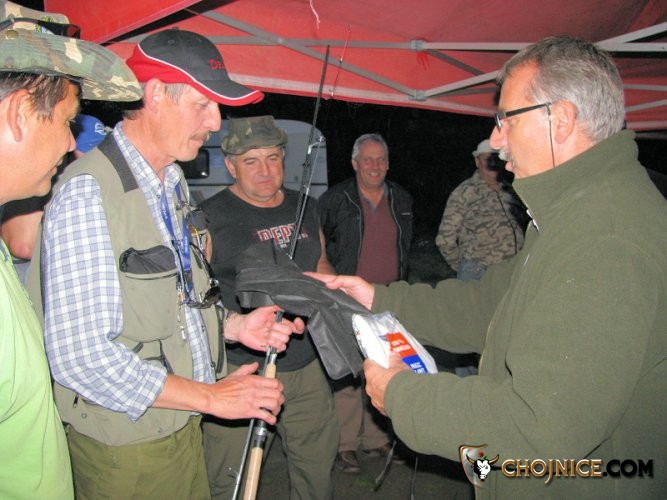 Andrzej Sosiński wręcza wędkę Mirosławowi Rudnikowi