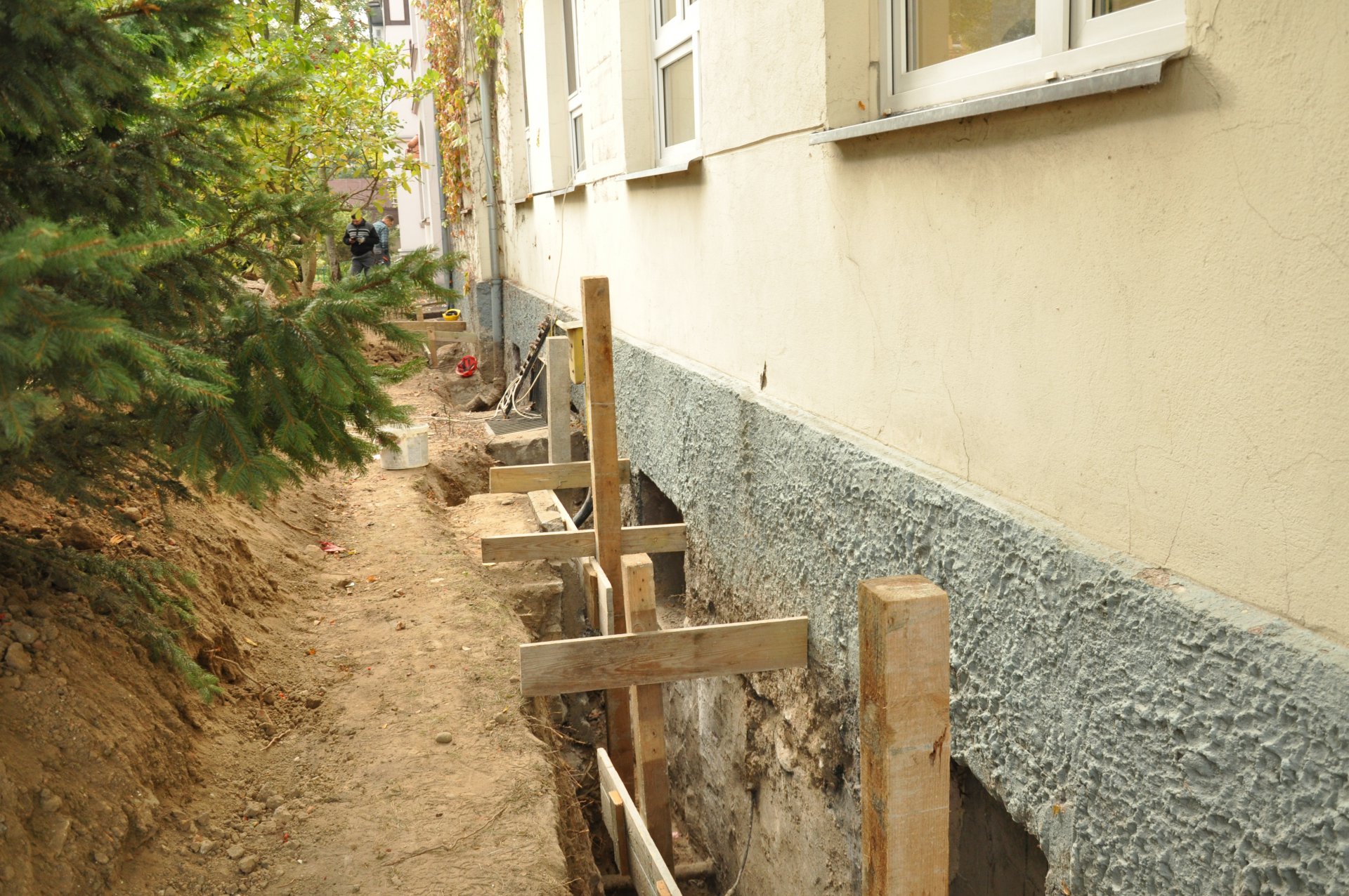 Od strony ul. Dworcowej widać roboty przy drenażu