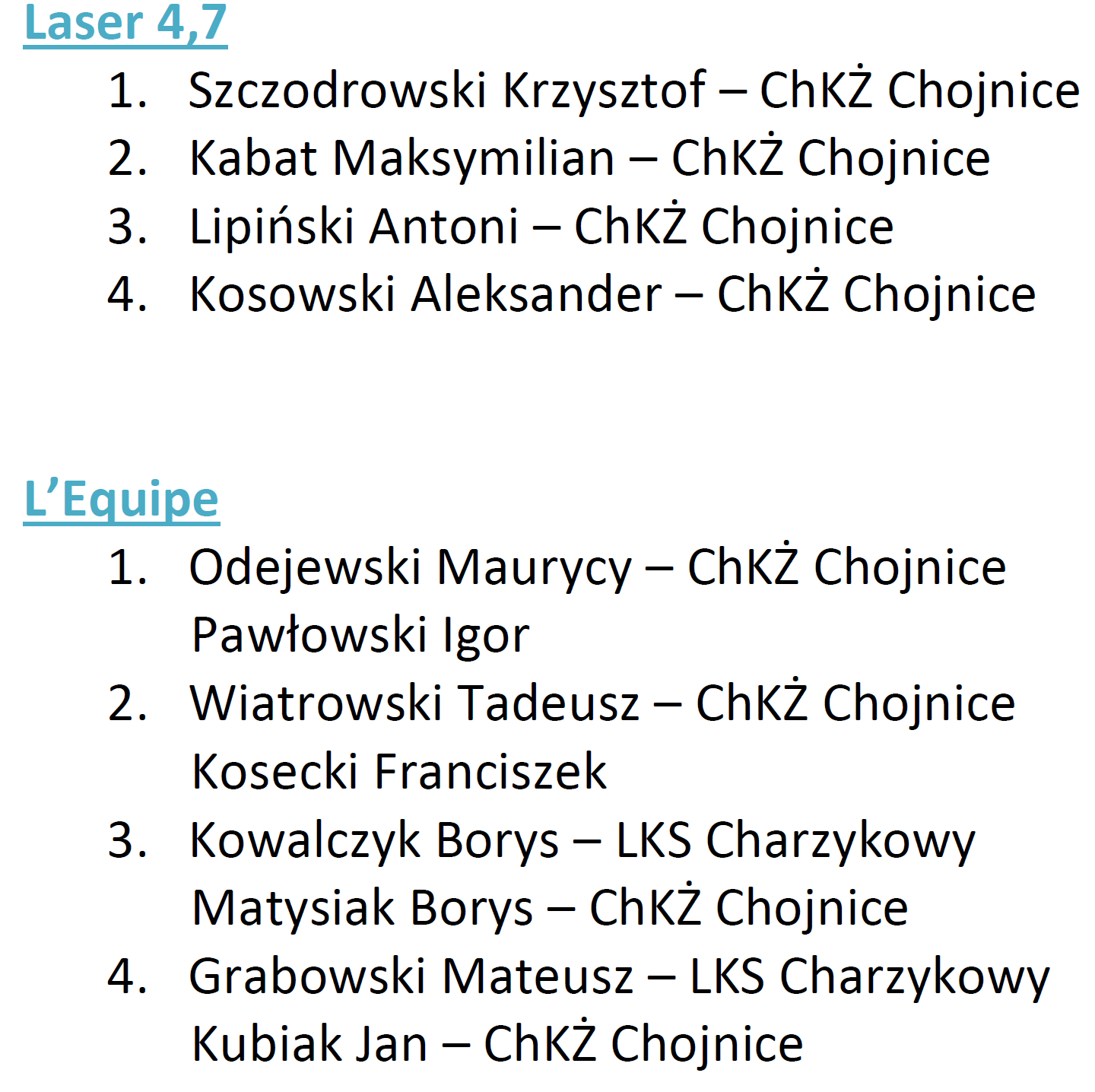 Wyniki 83 Błękitnej Wstęgi Jeziora Charzykowskiego