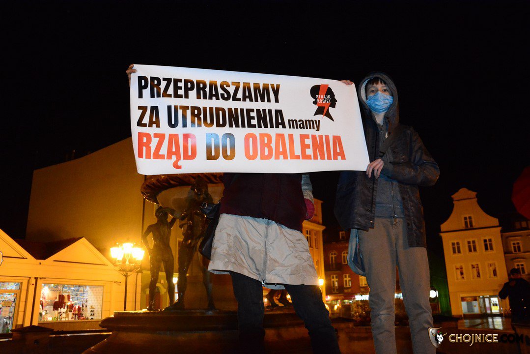 Samochodowa blokada ulic i polonez na Starym Rynku. Ósmy dzień Protestu Kobiet w Chojnicach