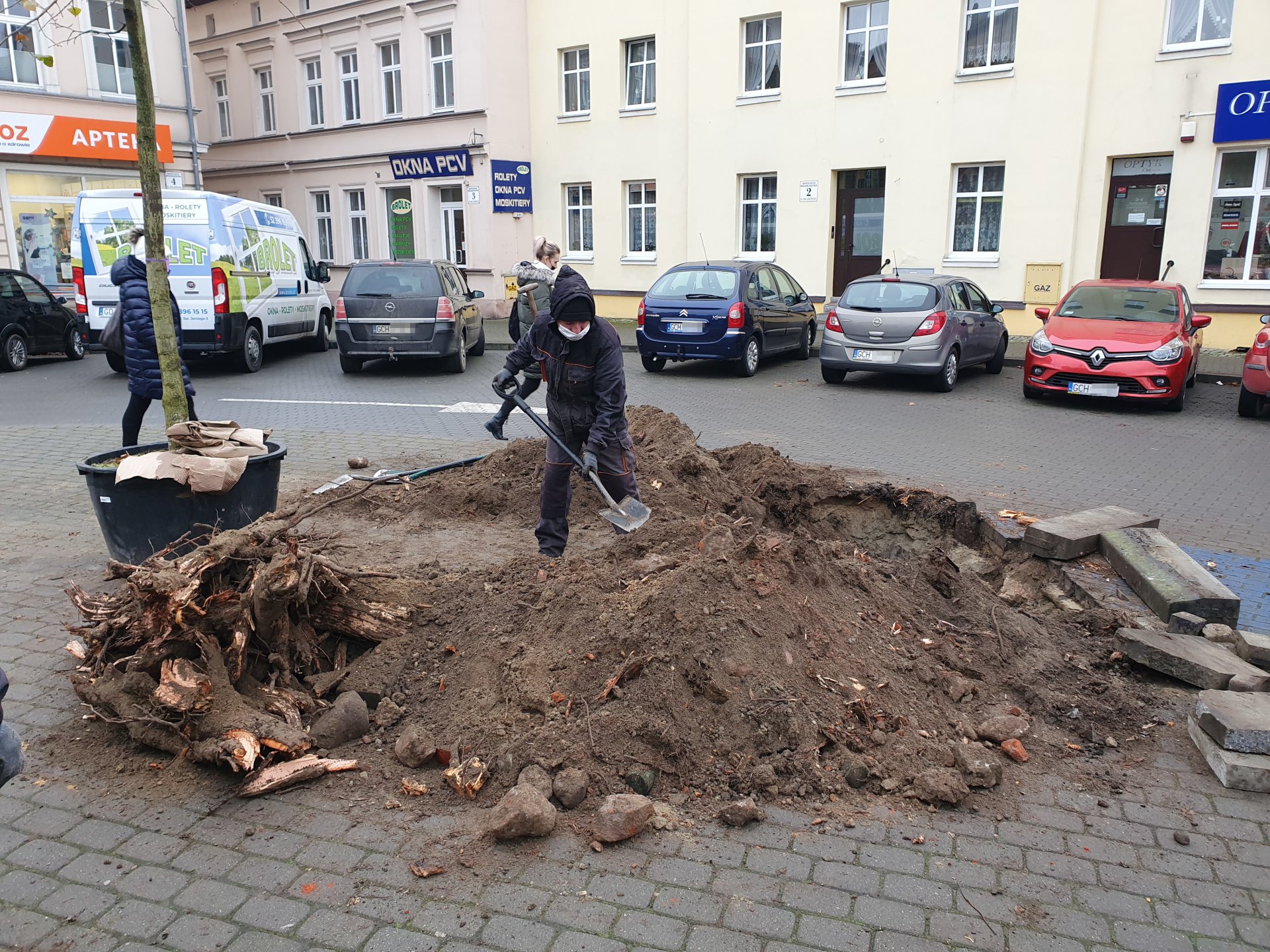 Wypróchniałą lipę zastąpiło młode, zdrowe drzewko