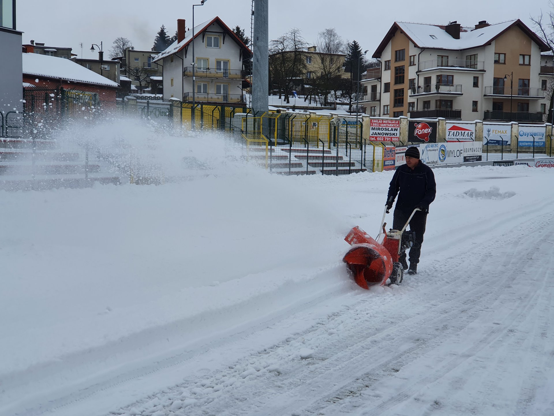 Kibice i sympatycy klubu odśnieżają boisko