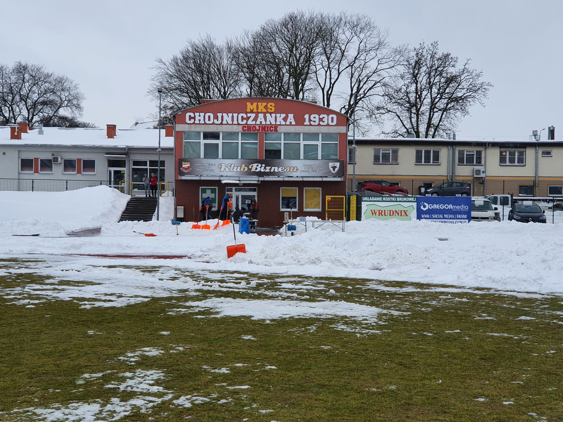 Kibice i sympatycy klubu odśnieżają boisko