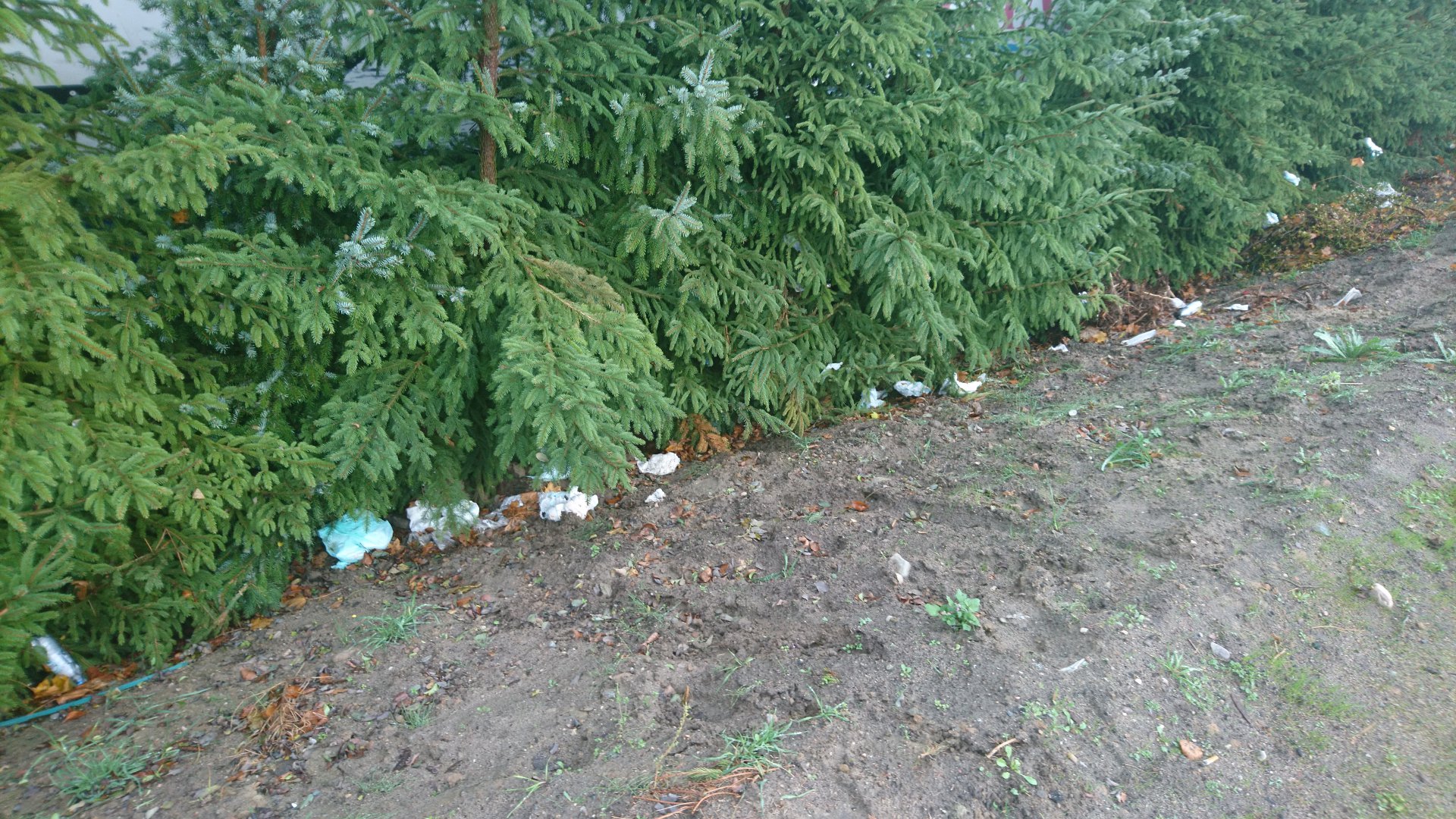 Zużyte pampersy obok parkingu przy cmentarzu w Charzykowach. Nagroda za wskazanie sprawcy!