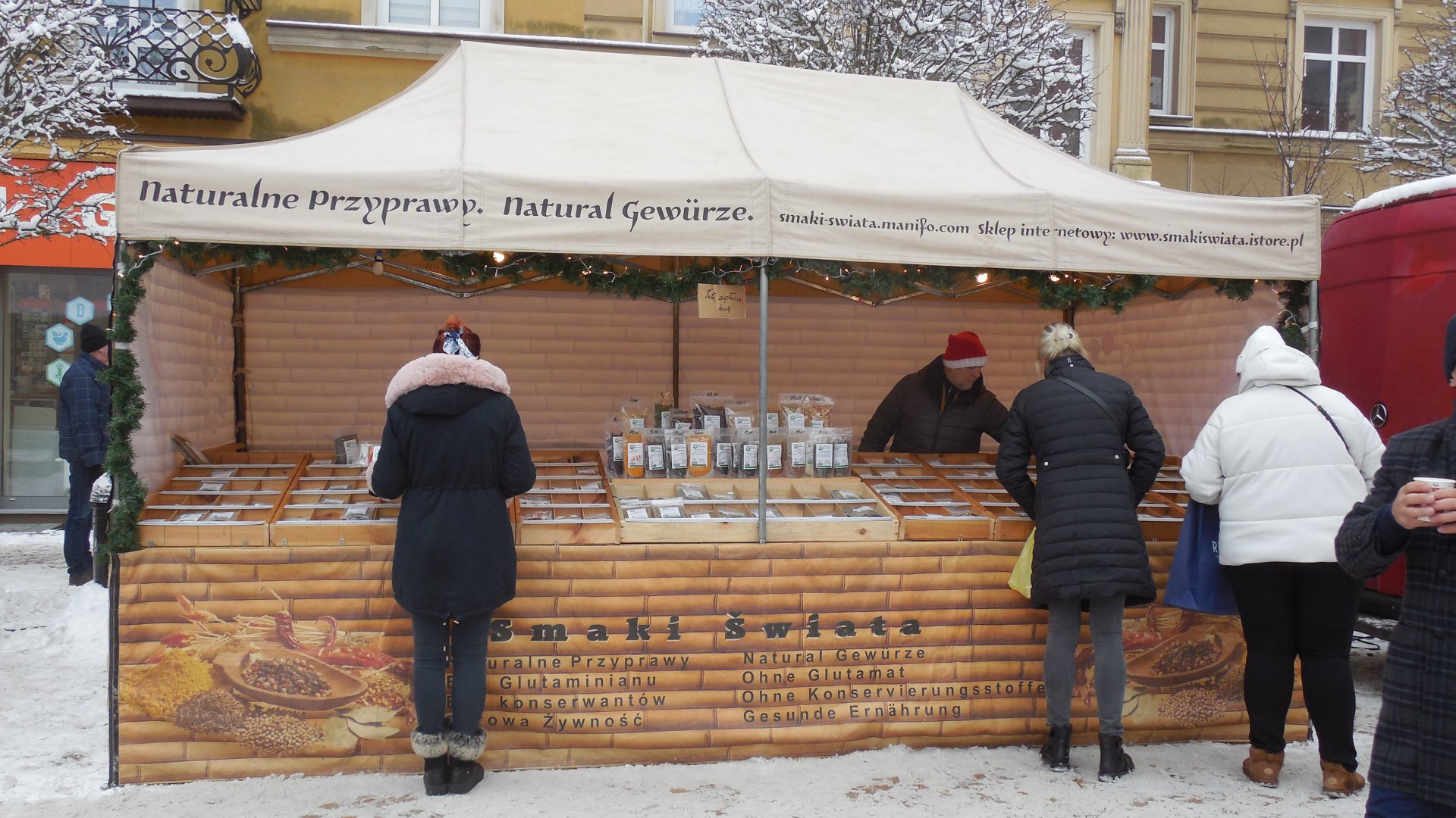 Burmistrz i jego zastępca razem prowadzili kramik z choinkami dla Aleksa