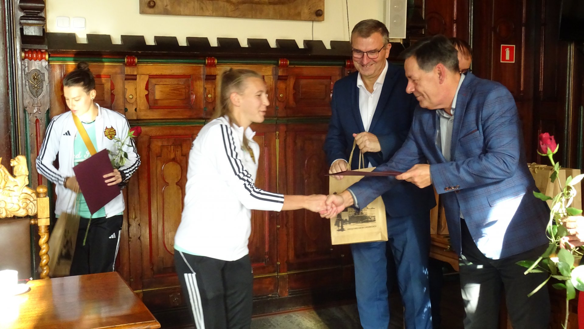 Red Devils Ladies z upominkami i gratulacjami od burmistrza