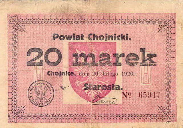 Polski środek płatniczy w Chojnicach z lutego 1920 r.