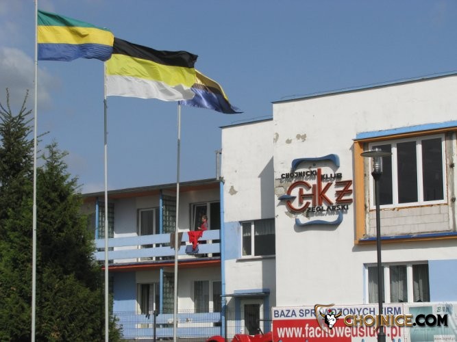 Flagi gminy i Chojnic przed ChKŻ.