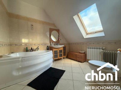 Na piętrze znajduje się duża, otwarta przestrzeń z wyjściem na balkon – z możliwością wydzielenia dodatkowego pokoju, sypialnia, łazienka z wanną i garderoba.