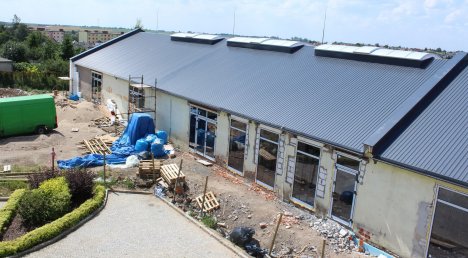 Od kwietnia br. trwa realizacja rozbudowy Centrum Edukacyjno - Wdrożeniowego. Stan zaawansowania prac jest całkiem spory - dawny magazynowy budynek ma już nowy dach, stolarkę okienną i drzwiową.