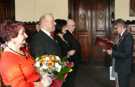 Dwie pary małżeńskie świętowały dzisiaj (14.03.) jubileusz 50 lecia małżeństwa - Krystyna i Wiktor Winkowscy oraz Jadwiga i Klemens Januszewscy. Burmistrz Jan Zieliński wręczył im przyznane przez prezydenta medale za długoletnie pożycie małżeńskie.
