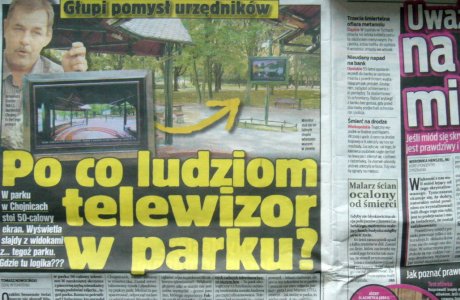 Kolejna darmowa promocja naszego miasta w prasie ogólnopolskiej, czy aby o taką chodzi? Burmistrz często podkreśla, iż na takowej mu zależy, jednak tym razem jest ona nieco ironiczna i to za sprawą ... telewizora parkowego.