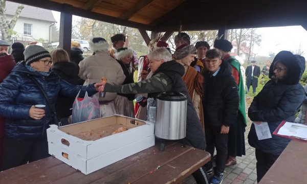 Flaga na maszt, hymn, krótka geneza tego święta, wspólne śpiewanie pieśni patriotycznych z Dworkiem Polskim, rogale marcińskie i gorąca herbata, m.in. tak obchodziliśmy 106 rocznicę Niepodległości w sołectwie Lichnowy.