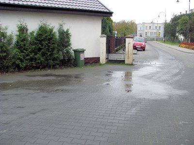 Materiał o awarii sieci wodociągowej przy ul. Drzymały 14 we wjeździe (tym bliższym ul. Żwirki i Wigury) w dawną bazę Gminnej Spółdzielni miał mieć charakter interwencyjny. „Niestety”, ale jest już częściowo relacją z jej