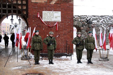 31 stycznia przy tablicy upamiętniającej wkroczenie wojsk polskich do Chojnic przed 90 laty, przed Bramą Człuchowską zebrało się wiele delegacji z kwiatami i wiązankami.