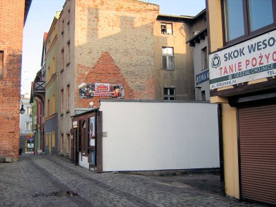 Ulica Podmurna mogłaby być jedną z piękniejszych na chojnickiej Starówce. Ma już stylowe lampy uliczne, przywrócony średniowieczny bruk. Gdzieniegdzie stoją ławeczki, jest i jedna „trumna” na ozdobną zieleń.