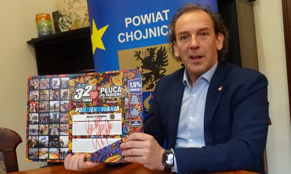 Starosta Marek Szczepański otrzymał dyplom z podziękowaniami za zaangażowanie się w organizację finału Wielkiej Orkiestry Świątecznej Pomocy od Jurka Owsiaka.