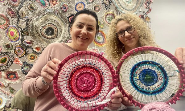 Instruktorki Gminnego Ośrodka Kultury w Chojnicach wzięły udział w bardzo kolorowych zajęciach. W Galerii Handlowej Brama Pomorza uczyły się tkania i dziergania niepowtarzalnych kompozycji po okręgu, aby swoje prace przyłączyć do ogromnej mandali.