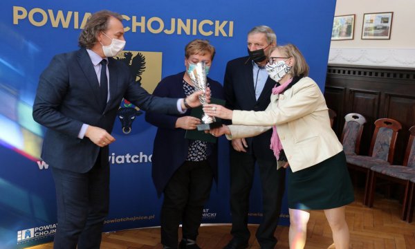 Przedstawiciele najpiękniejszych wsi i zagród z terenu powiatu chojnickiego odebrali nagrody z rąk starosty Marka Szczepańskiego oraz dyrektor Wydziału Ochrony Środowiska, Rolnictwa i Leśnictwa Lilli Sząszor.
