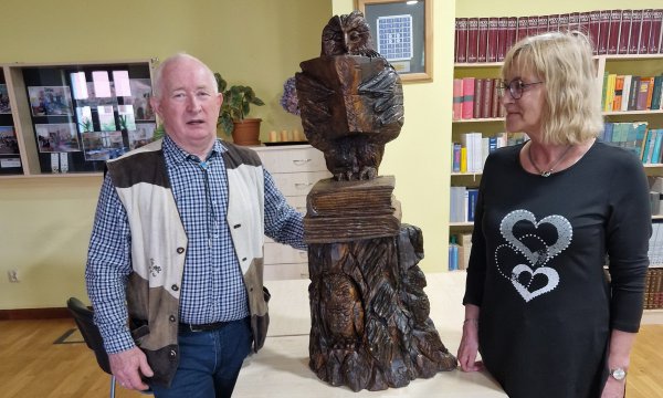 Niecodzienny prezent otrzymała Miejska Biblioteka Publiczna w Chojnicach. Jest to rzeźba przedstawiająca sowę czytającą książkę. Drewnianą rzeźbę dyrektor biblioteki Annie Lipińskiej przekazał lokalny twórca Grzegorz Szopiński.