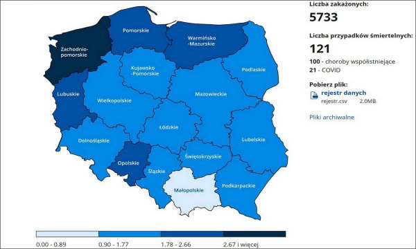 Z dobowego raportu Ministerstwa Zdrowia wynika, że od wczoraj przybyło w kraju 5733 zakażonych SARS-CoV-2. W województwie pomorskim liczba ta wynosi 441, a w powiecie chojnickim, 10.