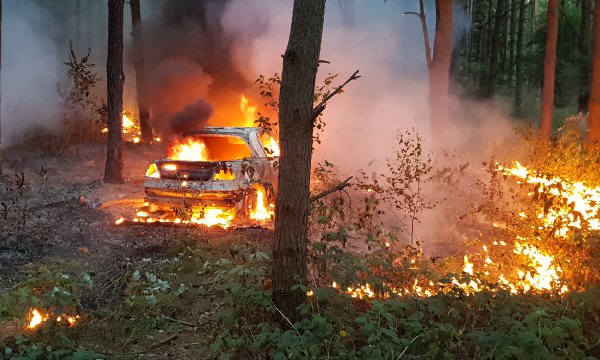 Wczoraj wieczorem wezwano straż do pożaru samochodu w lesie w miejscowości Nieżywięć. Po przybyciu na miejsce okazało się, że płomieniami objęty jest cały pojazd i poszycie lasu.