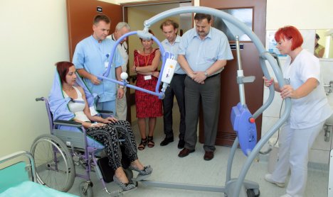 Oddziały pulmonologiczny i wewnętrzny chojnickiego Szpitala Specjalistycznego od dzisiaj (6.08.) dysponują nowoczesnym podnośnikiem do transportu pacjentów. To prezent ze starostwa.