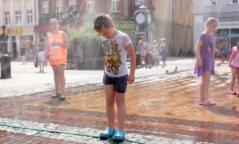 Namiastka kurtyny wodnej stanęła na rynku w Chojnicach. Jest idealna na upał. Dotychczas orzeźwienie w tej części miasta dawała woda tryskająca z fontanny. Od dziś jest już inaczej. Decyzję podjął UM a wykonaniem zajęła się firma Waldemara Spichalskiego.