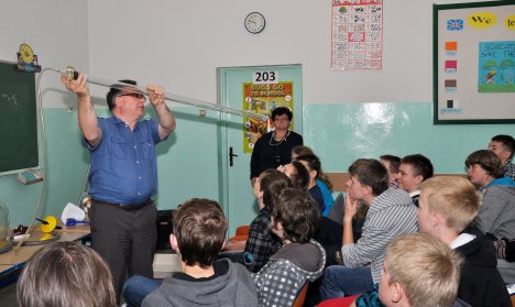 W Gimnazjum nr 3 odbyła się nietypowa lekcja fizyki. Poprowadził ją gość - prof. dr hab. Grzegorz Karwasz z Uniwersytetu Mikołaja Kopernika w Toruniu.