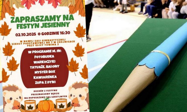 Zapraszamy na Festyn Jesienny, który odbędzie się 2 października (czwartek) o godzinie 16:30 w nowej sali gimnastycznej w Szkole Podstawowej nr 7 w Chojnicach. Na gości czeka wiele atrakcji.