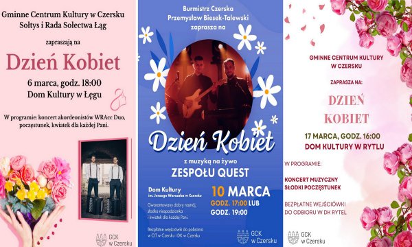 Gminne Centrum Kultury w Czersku organizuje szereg bezpłatnych wydarzeń dla pań w swych placówkach z okazji zbliżającego się ich święta. W Domu Kultury w Czersku zagra zespół Quest, a na każdą panią będzie czekał kwiatek i coś słodkiego.