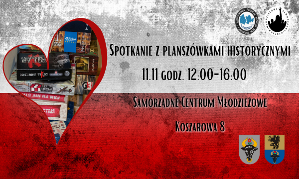 Wolontariusze Samorządnego Centrum Młodzieżowego w Chojnicach zapraszają na coroczne spotkanie z grami planszowymi z okazji Narodowego Święta Niepodległości. Podczas spotkania będzie można zapoznać się i zagrać w gry planszowe o tematyce wojennej.