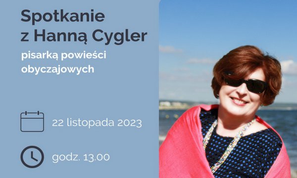 Filia nr 6 Miejskiej Biblioteki Publicznej w Chojnicach zaprasza w środę 22 listopada o godz. 13.00 na spotkanie z Hanną Cygler, pisarką z Gdańska. Jest ona tłumaczką, a hobbystycznie pisze powieści obyczajowe.