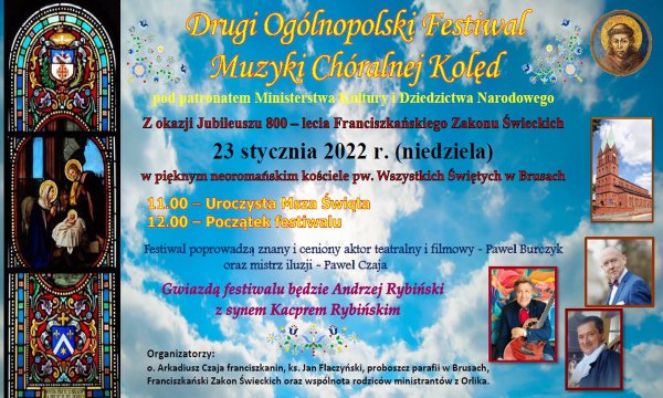 W niedzielę 23.stycznia w kościele pw. Wszystkich Świętych w Brusach odbędzie się II Ogólnopolski Festiwal Muzyki Chóralnej Kolęd. Objęło go patronatem Ministerstwo Kultury i Dziedzictwa Narodowego.