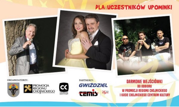 Promocja Regionu Chojnickiego oraz Chojnickie Centrum Kultury zapraszają 14 sierpnia na koncerty muzyczne „Letnio, łatwo i przyjemnie”. Letnio - jeśli latem jest czasem Państwu za gorąco, zapraszamy do klimatyzowanej sali ChCK.