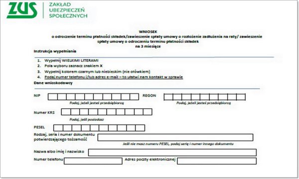 ZUS prowadzi prace nad uproszczeniem formularzy umożliwiających wsparcie przedsiębiorców np. przez odroczenie płatności składek. Z chwilą uznania przez KE, że ulgi udzielane na podstawie specjalnej ustawy nie będą stanowiły pomocy publicznej.