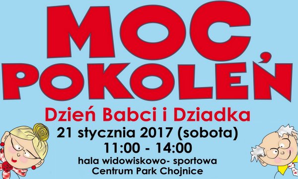 Z okazji Dnia Babci i Dziadka zapraszamy w sobotę 21 stycznia o godz. 11:00 do hali widowiskowo - sportowej Centrum Park na wydarzenie łączące pokolenia. W programie występy artystyczne, konkursy z nagrodami oraz słodki poczęstunek.